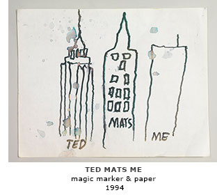 Rhein considers this time in October 1994 as his "Artist in Residence" at St. Vincent's. Provided with paper and magic markers by his mother and friend, Mats, Rhein expressed himself with an almost childlike enthusiasm as AZT was administered in an effort to help his condition. While AZT was able to successfully curtail this manic state, his health continued to rapidly deteriorate. By the end of 1995, Rhein was near death, but then he found himself on a study for the new protease inhibitors, and his health was restored.